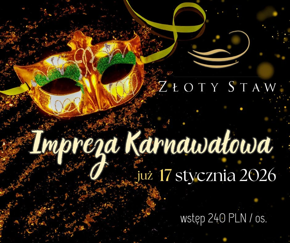 Już 17 stycznia 2026 r szykujemy dla Was niezapomnianą imprezę karnawałową w Złotym Stawie. Jak zwykle czeka na Was noc pełna emocji, szaleństw na parkiecie i dobrego humoru.